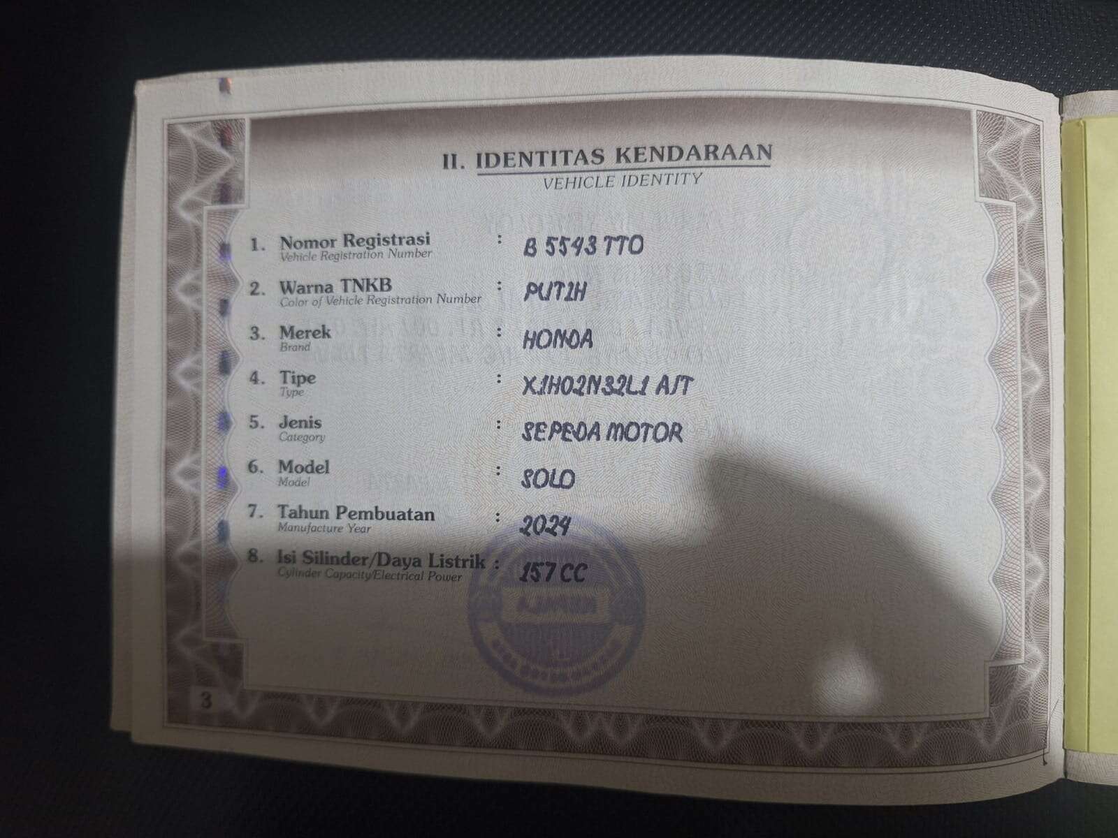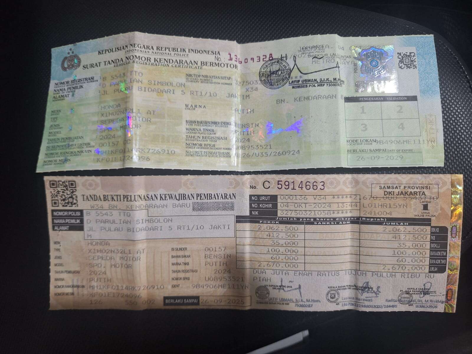 - Nomor Polisi B 5543 TTO