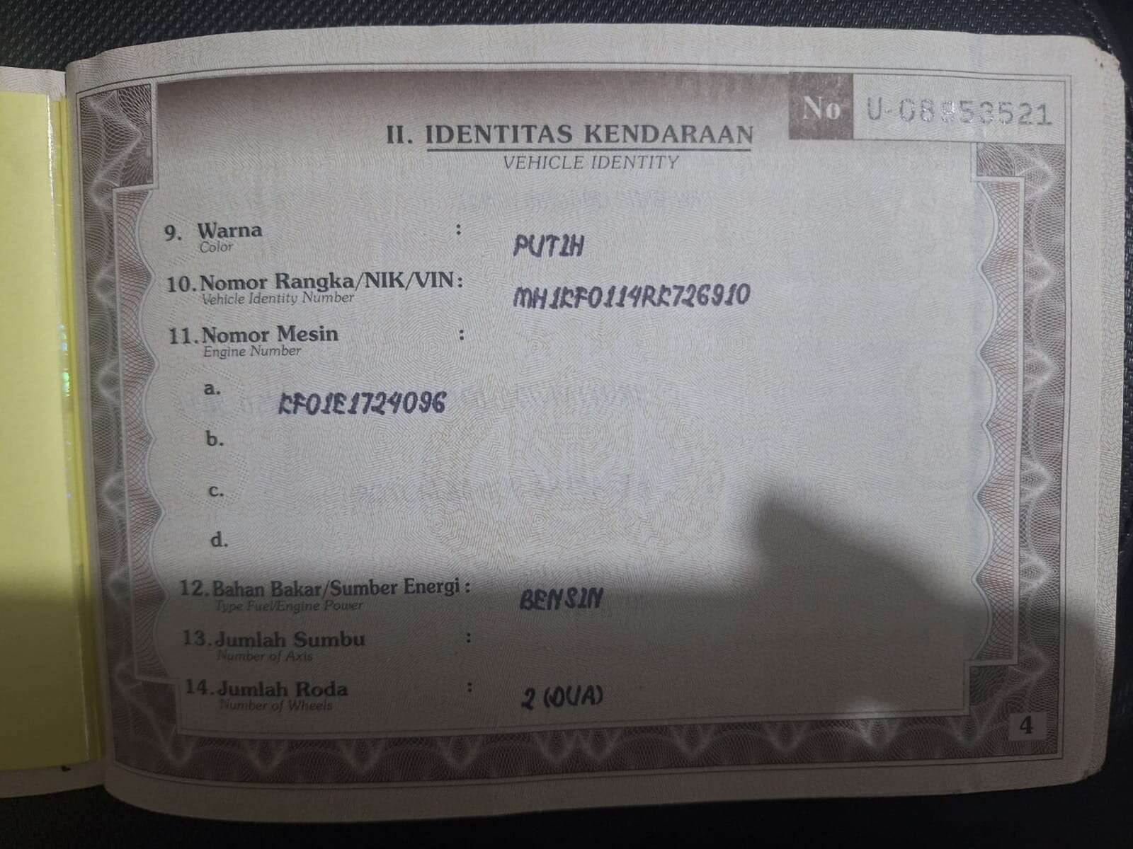 - Nomor Polisi B 3438 UJR