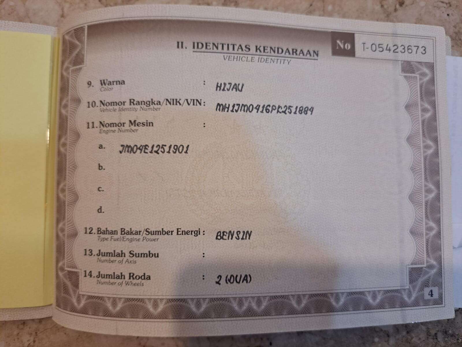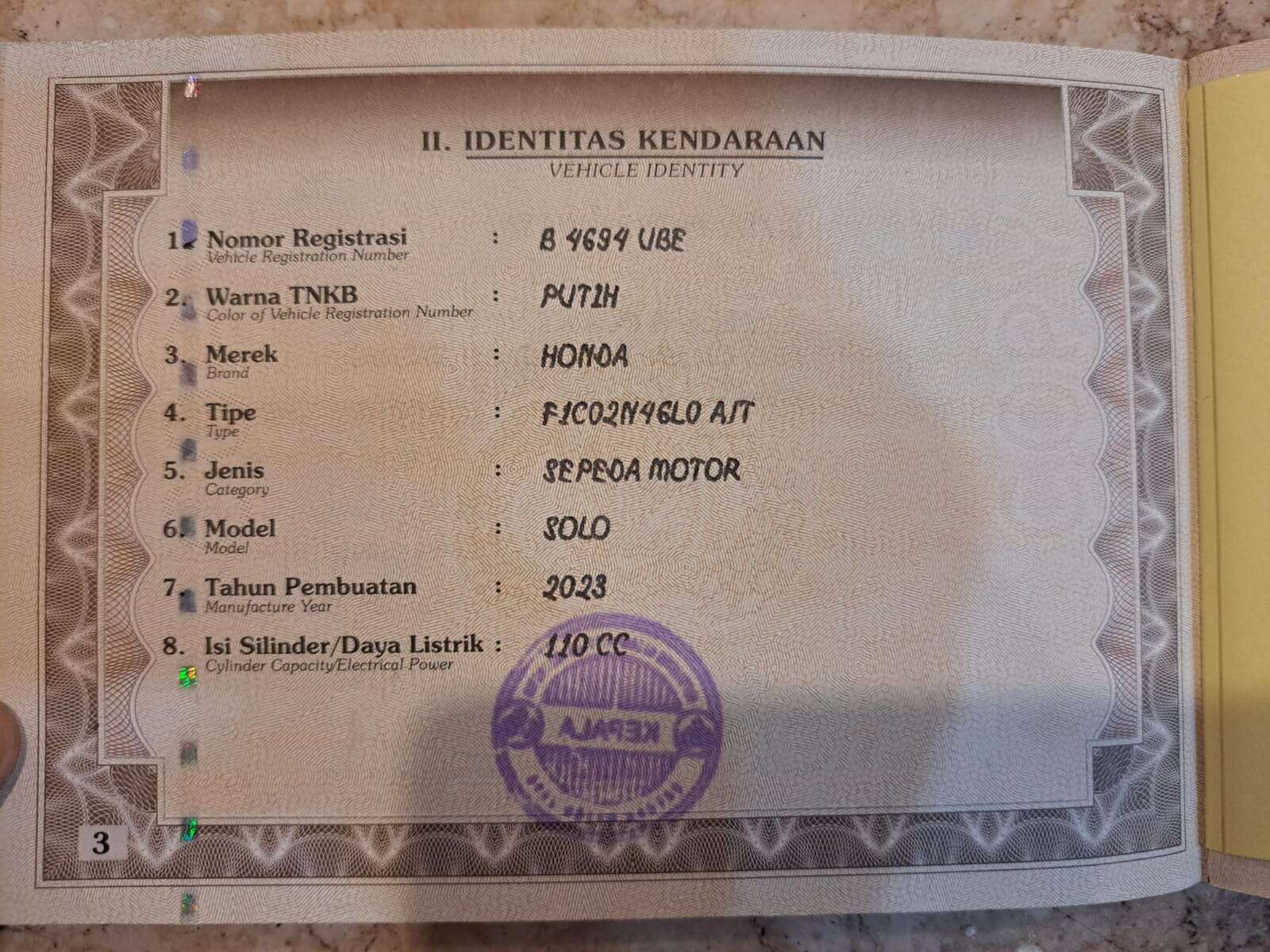 - Nomor Polisi B 4694 UBE