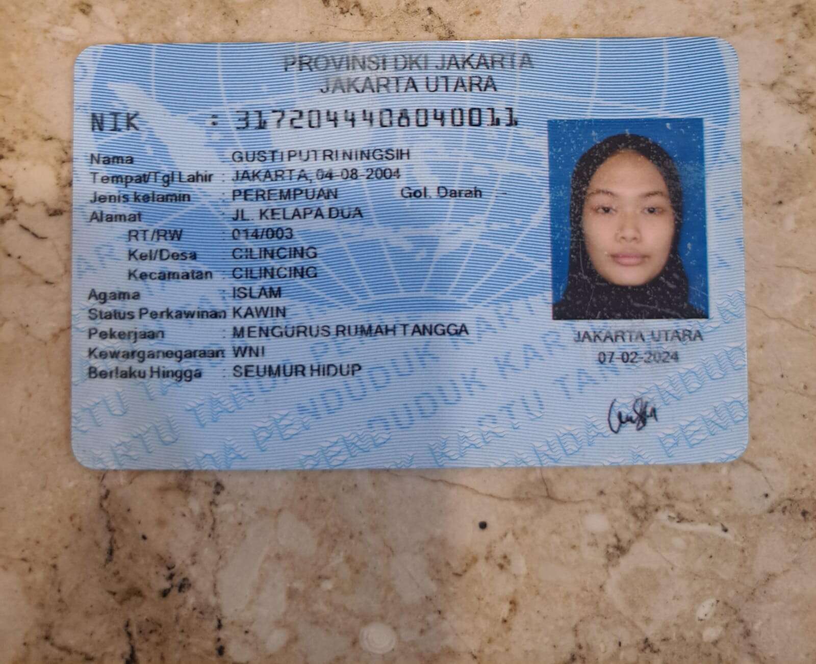 - Nomor Polisi B 3742 CBK